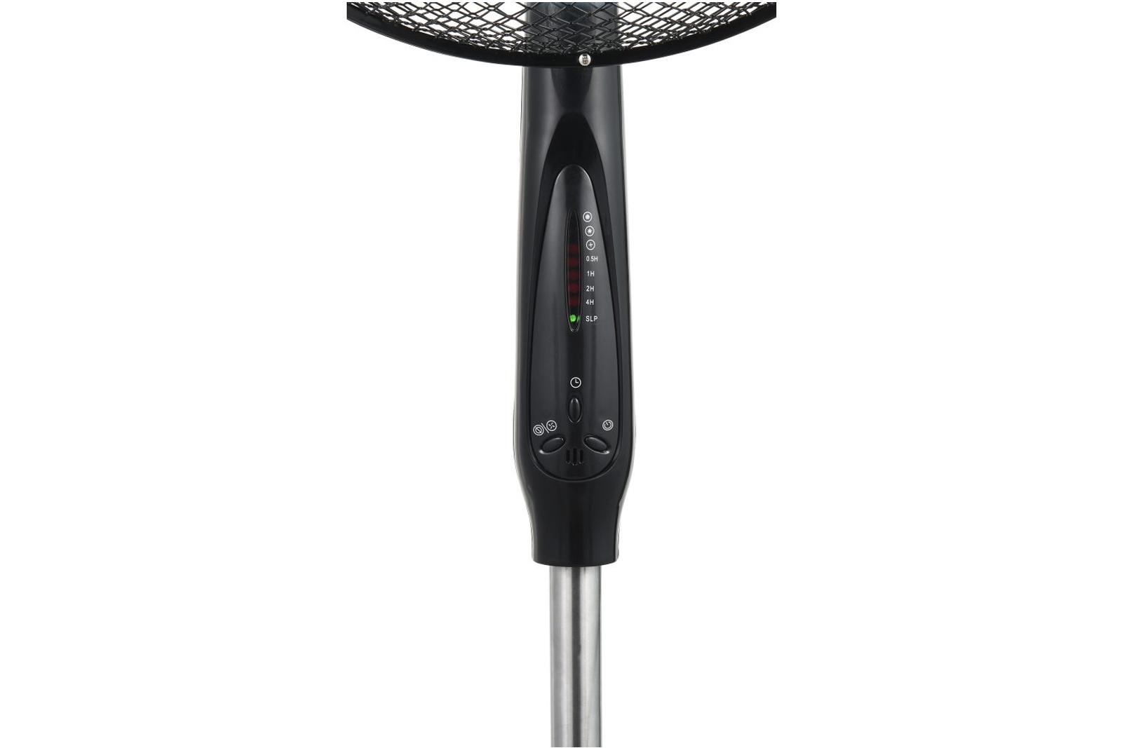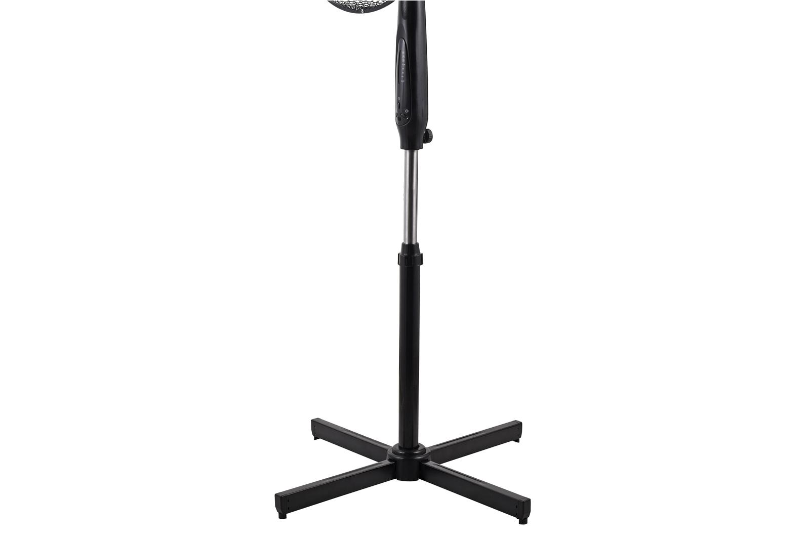 Stoječi črni ventilator s premerom 40 cm. Ima tri kratke vetrnice in tri hitrosti delovanja. Možnost nihanja. Moč 55W ter delovanje na 230V. Skupna višina 125 cm.