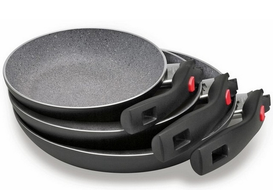 Močna aluminijasta ponev s kakovostnim neoprijemljivimi nanosi iz emaila in granitnimi minerali.
