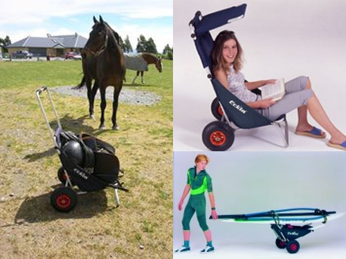 Transportni voziček "za plažo", ki pa je lahko tudi udoben ležalnik (obremenitev do 100 kg. Ima dvoje koles (ø26 x 8.5 cm) s pnevmatiko polnjeno z zrakom, tako da je voziček primeren tudi za vožnjo po pesku ali mivki. Ogrodje je narejeno iz nerjavečega aluminija. Ob neuporabi Beach Rolly zasede zelo malo prostora (71 x 76 x 9 cm), tako da je lahko vedno z vami na potovanju. Vsestransko uporaben za prevoz na plažo, ribolov, transport hrane, pijače, opreme za potapljanje, deskanje, manjše čolne, kajake... Voziček nemške znamke Eckla vam bo postal nepogrešljiv ko boste občutili njegovo uporabnost tako v kampu kot doma ali ob prostem času.