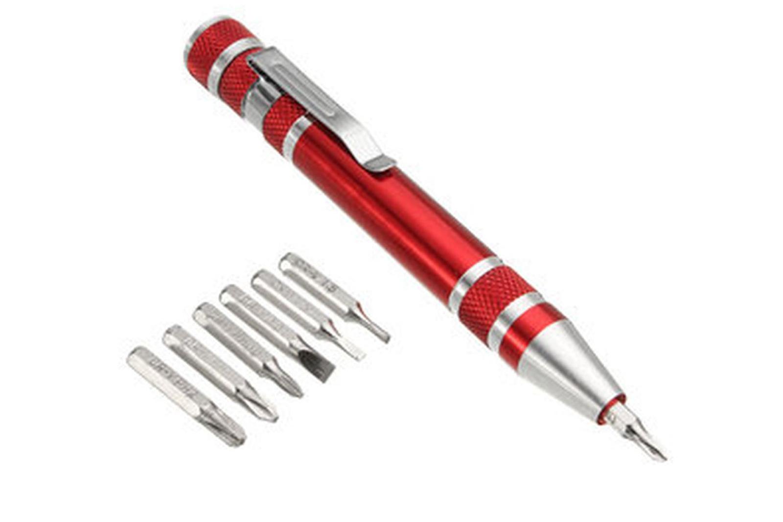 Priročen žepni izvijač s osmimi nastavki. Idealno za prvo pomoč pri popravilu okoli prikolice ali v avtodomu.