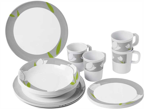 Inovativen dizajn 16-delnega jedilnega servisa iz kvalitetnega melamina znamke Brunner.