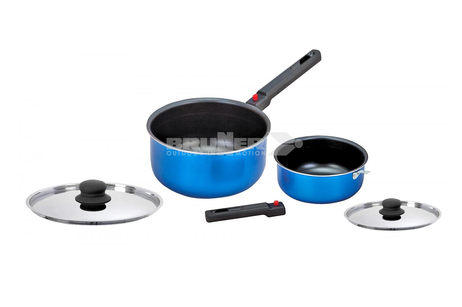 Set aluminijaste posod z non-stick premazom in silikonskimi ročaji. Uporabno na plin, elektriko in keramiko. Enostavno za pomivanje.