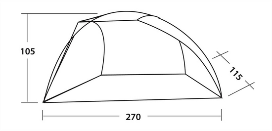 Senčnik iz enega kosa, ki zagotavlja pomembno zaščito pred soncem (UV 50), vetrom ali rahlim dežjem. Zlasti primerno za zaščito majhnih otrok. Pol-kupolast senčnik ima všito dno in torbico za transport.