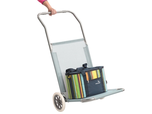 Odlična inovacija; stol za plažo in voziček za nošenje kamping pohištva in ostale opreme! Enostaven za prenašanje in zelo zanesljiv! Narejen iz trpežnega 100% tkanega poliestra Textilene s premazom. Šitir stopnje sedenja. Ima tudi dodaten žep za drobarije. Okvir iz jekla. Največja nosilnost kot stol 100 kg, kot voziček 20 kg. Odpre se v nekaj sekundah!