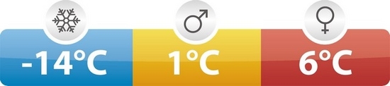 | Temperatura | udobje do 1 / za ženske do 6 / ekstrem 14 |