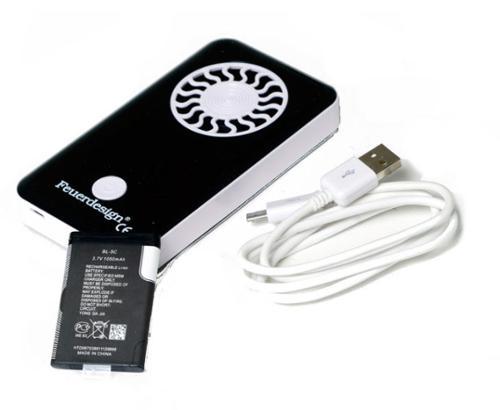 Ventilator za žar Fire Design, vključno z baterijo in polnilnim kablom.