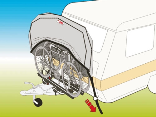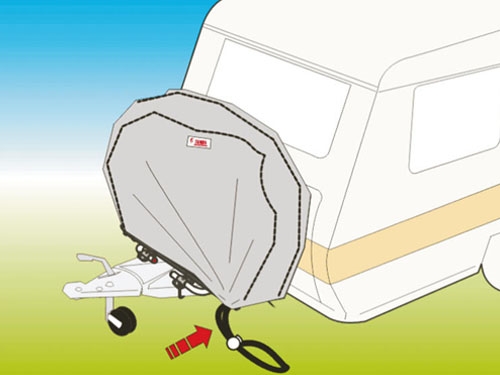 Pokrivalo ščiti pred umazanijo kolesa, ki so nameščena na nosilcu na oje od prikolice.