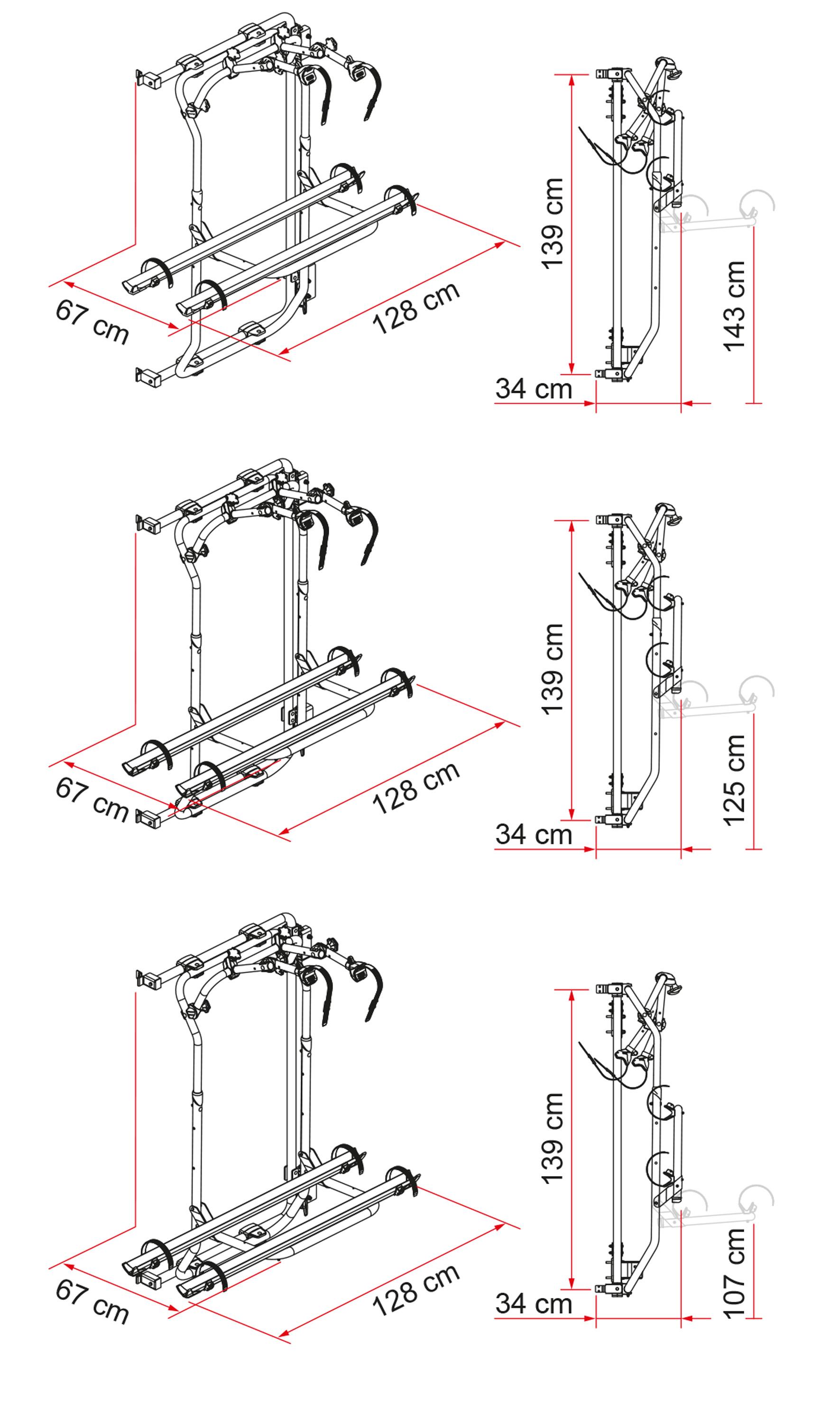 Nosilec koles Fiamma Carry Bike Ducato Frame od leta 2006 naprej - edini, ki omogoča prevoz treh koles na vozilu z dvojnimi zadnjimi vrati.