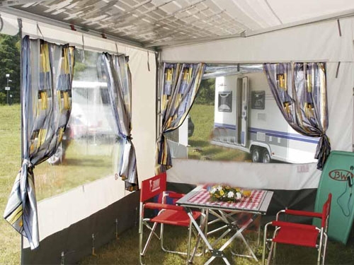 Zatemnitvena "roll-up" okna, prednja in stanska okna imajo tudi komarnik, stene se na vogalih zapne z zadrgo.