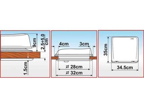 | Dimenzije | 280 x 280 mm, višina nad streho 85 mm |