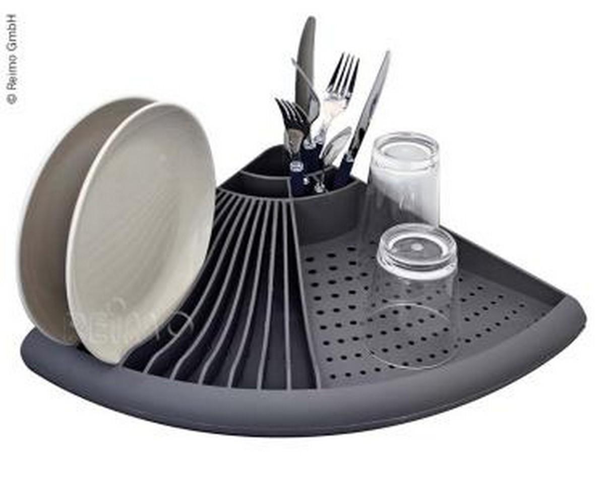 Kotno stojalo za odcejevanje posode v sivi barvi. Dimenzija: 35 x 50 x 9,5 cm