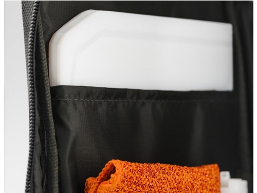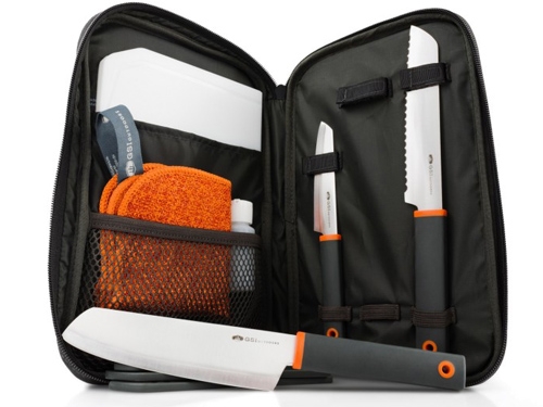 Odličen set nožev (3 kosi), rezalne plošče, steklenice za detergent, dvostranska krpica za čiščenje in praktična najlonska torbica. Rezila iz kvalitetnega nerjavečega jekla z ergonomsko oblikovani gumijastimi ročaji za zanesljiv oprijem. Dvostranska zložljiva rezalna plošča. Krpica je narejena iz mehkega materiala iz mikrovlaken, druga stran pa iz neobrazivne tkanine za grobo čiščenje.