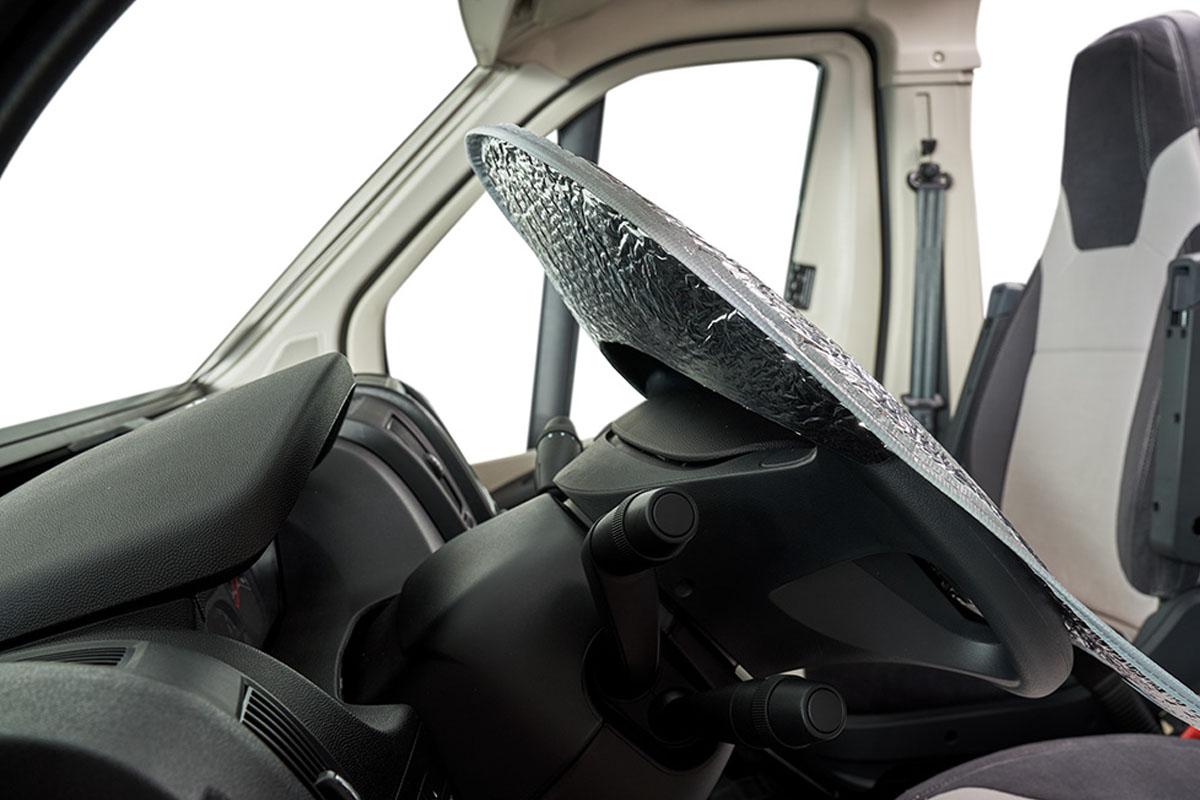 Ni v prodajiOdlična termo zaščita pred vročino za vaš volan pred kratkimi postanki. Primerno tudi za zaščito vzglavnikov v kabini. Premera 39 cm. Primerno za skoraj vsa kombi vozila. Enostavna pritrditev.