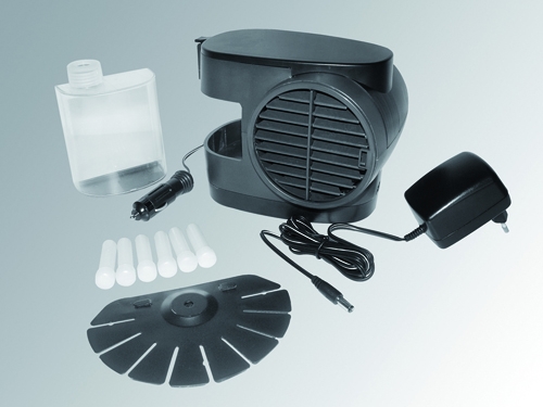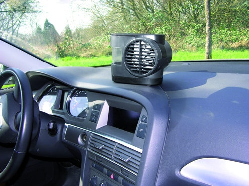 Hladilna naprava za avtomobil, kamp ali za domačo uporabo. Delovanje na osnovi evaporacije vode (optimalno hlajenje z ledenimi clindri). Zagotavlja osvežitev. Deluje na ventilator z nastavljivimi prezračevalnimi zarezami in ima dve stopnji nastavitve. Tri možnosti pritrditve. V kompletu 230V adapter in 12V kabel za avto vžigalnik.
