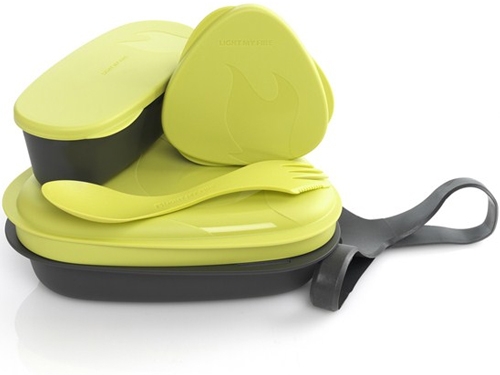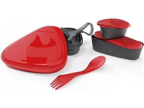 Komplet Light My Fire Lunch Kit je zložljiv komplet posod in pribora, ki pride prav v divjini ali v mestu! Narejen je kot nalašč za v vaš nahrbtnik, čoln, košaro za piknik ali kot škatla za malico v šoli in na delovnem mestu. Meal Kit potrebuje vse, da lahko vaš obrok udobno pojeste. Tako lahko uživate hrano kjerkoli in kadarkoli. Komplet je se praktično zloži, primeren za gretje v mikrovalovni pečici in je vodoodporen, tako da hrana ostaja zmeraj sveža. Komplet vsebuje: 2x krožnika (500 in 900 ml), ki se zložita skupaj v posodo, , 1x žvilca Spork Original, 1x posoda SnapBox Original (170 ml) , 1 x posoda SnapBox Oval (320 ml) in pašček za spravitev kompleta. Lunch Kiit 2.0 je verjetno najbolj popolen prenosni pribor hrane na tržišču, ki bo očaral vsakega popotnika!