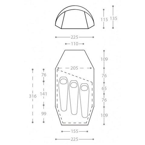 V šotoru je več kot dovolj za tri osebe in njihovo opremo.