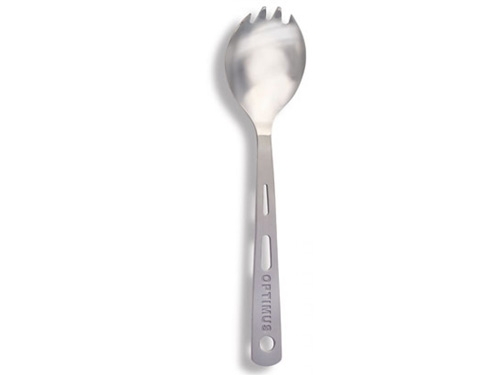 Jedilni pribor za ljudi, ki uživajo hrano v ekstremnih pogojih! Izdelano iz zelo lahkega in izjemno trpežnega titana (ni strupen in ni magnetno nastrojen). Žlica in vilca v enem (žvilca).