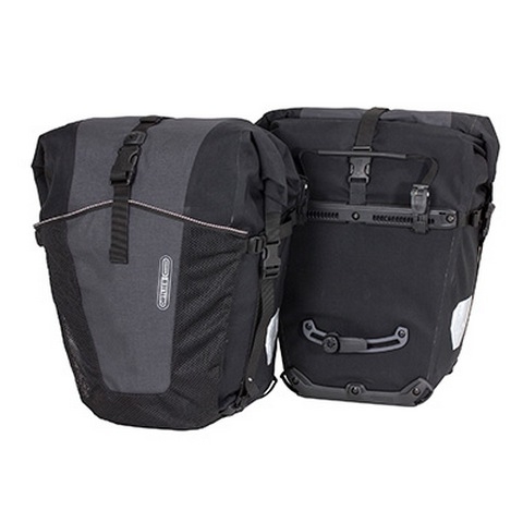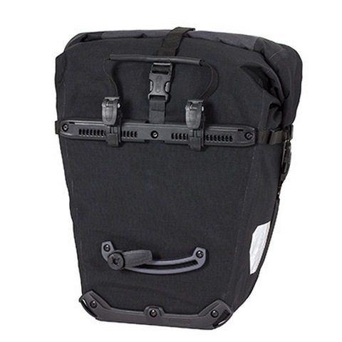 Velika nepremočljiva kolesarska torba, primerna za daljša potovanja. Robustna in nepremočljiva tkanina - PVC laminiran poliester, vodotesnost torbe omogoča tudi sistem zapiranja z zvijamjem. QL2.1 način pritrjevanja pa omogoča hitro odstranjevanje in montiranje torbe na nosilec kolesa. Ima nameščeno naramnico, katera omogoča lahko prenašanje torbe, ko ni na nosilcu. Cena za par.