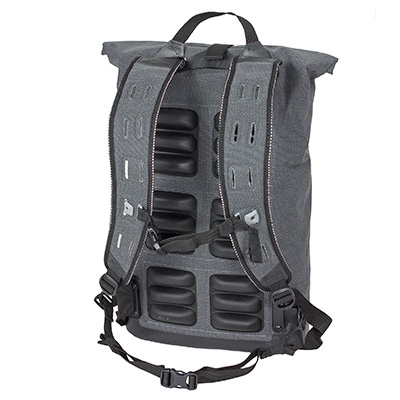 Pravi mestni nepremočljiv nahrbtnik iz na dotik prijetnega laminiranega materiala iz cordure in bombaža. Zapiranje z zvijanjem, ventilacijski kanali na hrbtišču, oblazinjen žep za notebook ali tablico do 15,4". Naramnice se lahko odstranijo.