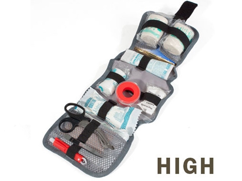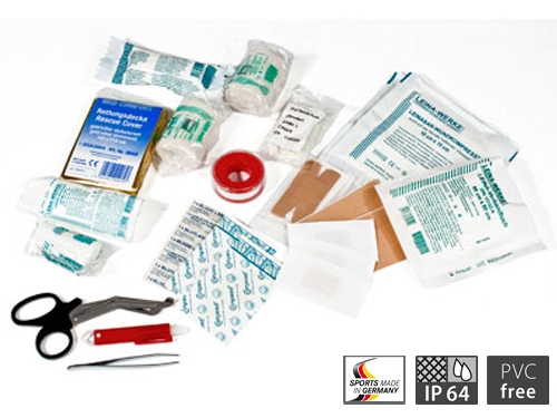 Prva pomoč, ki mora biti sestavni del vaše opreme! Torbica iz vodotesne najlonske tkanine (IP 64), ki se zapira z zvijanjem in pasno sponko in poseben nosilec za nahrbtnike in torbe. Odlična prva pomoč sestavljena posebej za pohodnike in alpiniste.