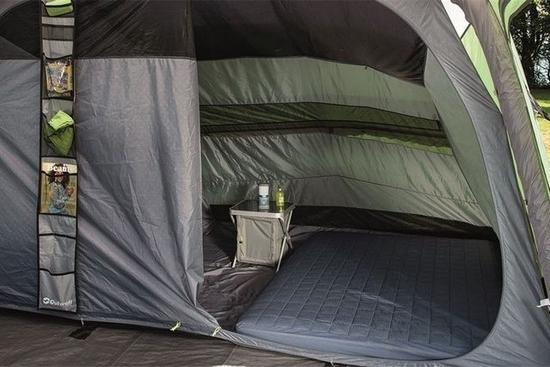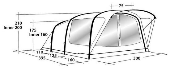 Air kolekcija je prenovljena v modernem skandinavskem dizajnu in predstavlja napihljive šotore. Šotore odlikujejo velika prednja vrata, ki se lahko odmaknejo, da nastane velika odprtina (Panorama Opening). Hkrati se lahko povsem ostranijo vrata spalnice (360° Acces System) in nastane nastane velik in prijeten prostor. Namesto z vrati je lahko šotor zaprt z velikim komarnikom. Tkanina Outtex 4000 s potiskom ima kar 4000 mm vodnega stolpca. Zatemnjena okna (z zavesami) prispevajo k lepemu izgledu šotora. Cedarville 5A je kompakten družinski šotor z visokim predprostorom in priročnim nadstreškom nad vhodom. |