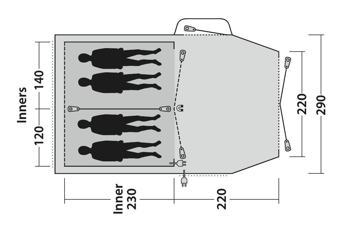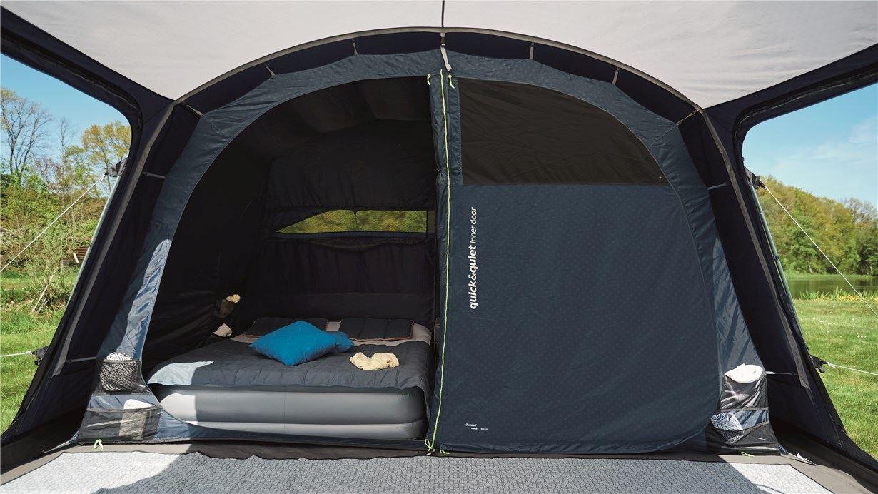 Odlika je res temna spalnica, večja spalnica se lahko (poleg z zadrgo) zapira tudi z magnetnim sistemom (Quick & Quiet Inner Door) - tako se ne moti spanca drugih v šotoru.