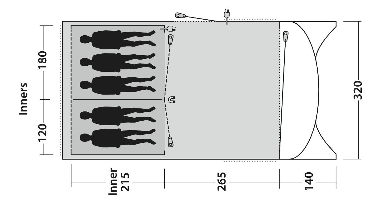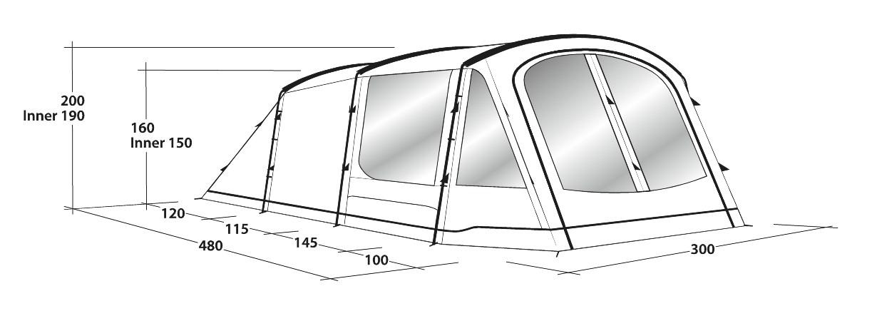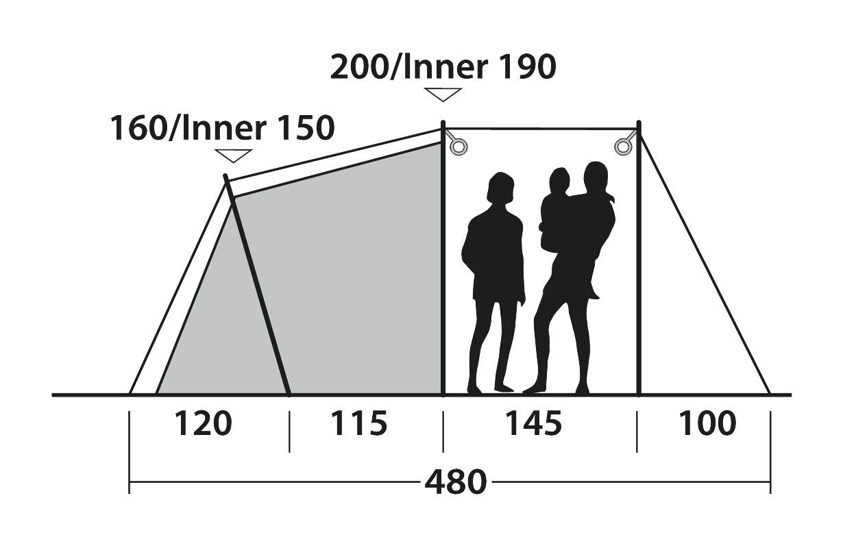 Pred ukrivljene palice Duratec zagotovijo ne samo stojno višino ampak tudi več prostora v višini glave. Prijetno svetlobo v šotoru zagotovi tonirana streha šotora.