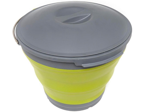 Še ena Outwello-va ideja kako prihraniti prostor: zložljivo vedro. Se ne razbije, enostavno čiščenje in se zapre ali odpre v nekaj sekundah. Priložen tudi masiven pokrov za vedro.