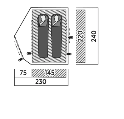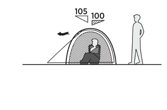 Ima zadnji vhod, da zlahka vstopite v šotor, ter dober sprednji pretok zraka, ki poskrbi, da je notranjost sveža. Spredaj je tudi prostor za shranjevanje opreme, kjer lahko odložite nahrbtnike, čevlje ali kuhate v slabšem vremenu.