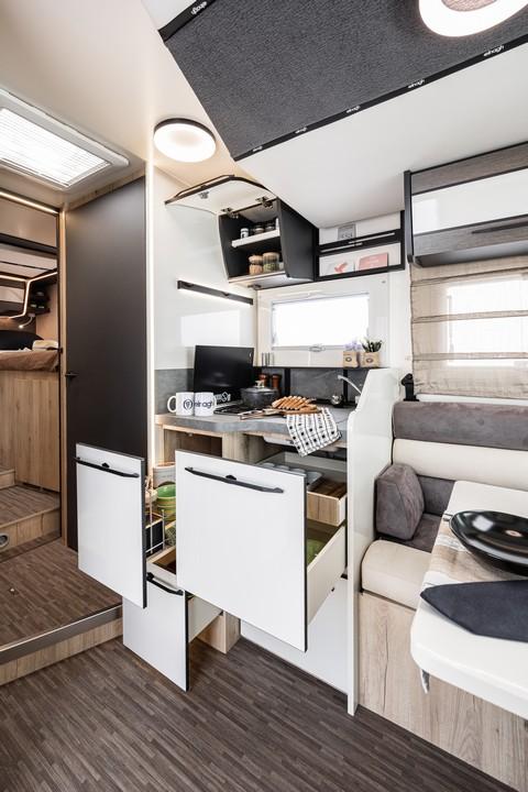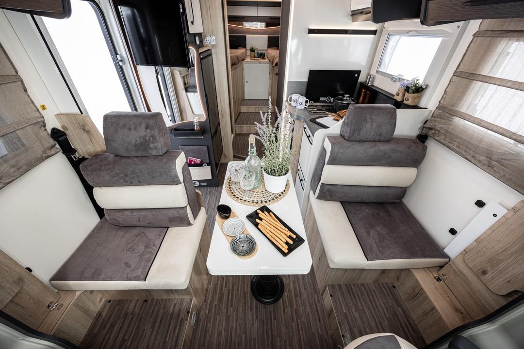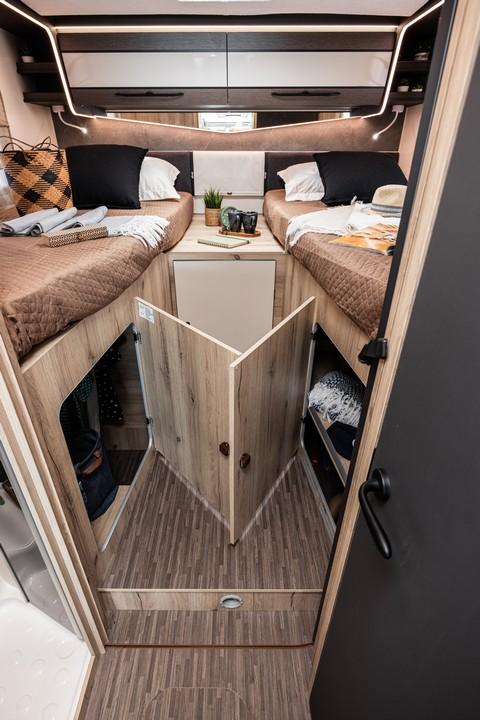 Avtodom T-Loft 532 - polintegriran avtodom s 4 sedeži in 4 ležišči z ločenima vzdolžnima posteljama, ki se lahko združita.