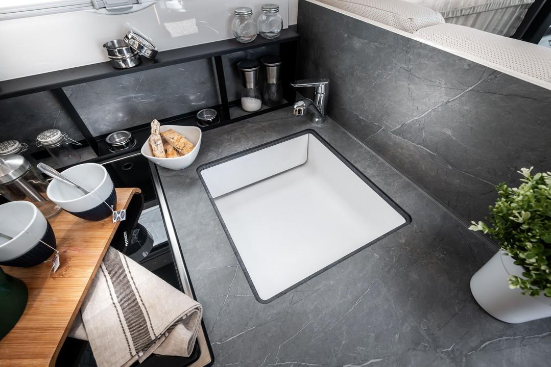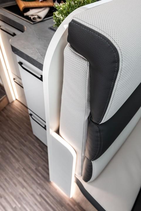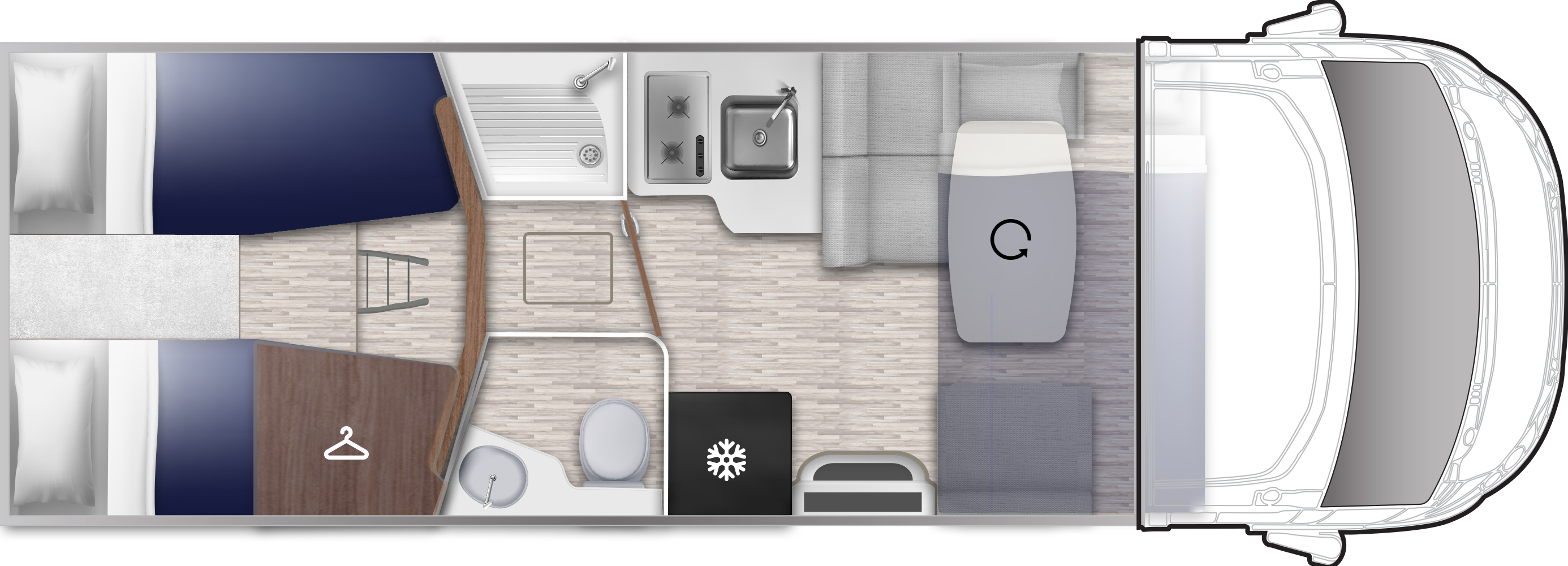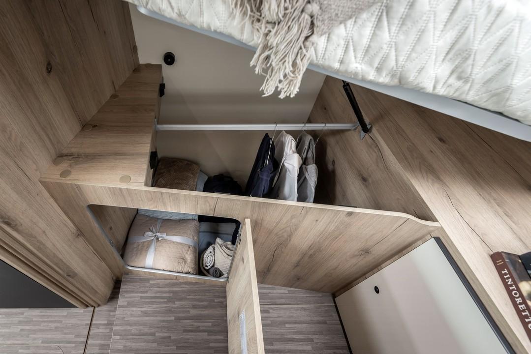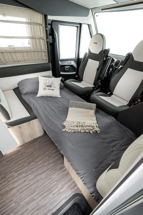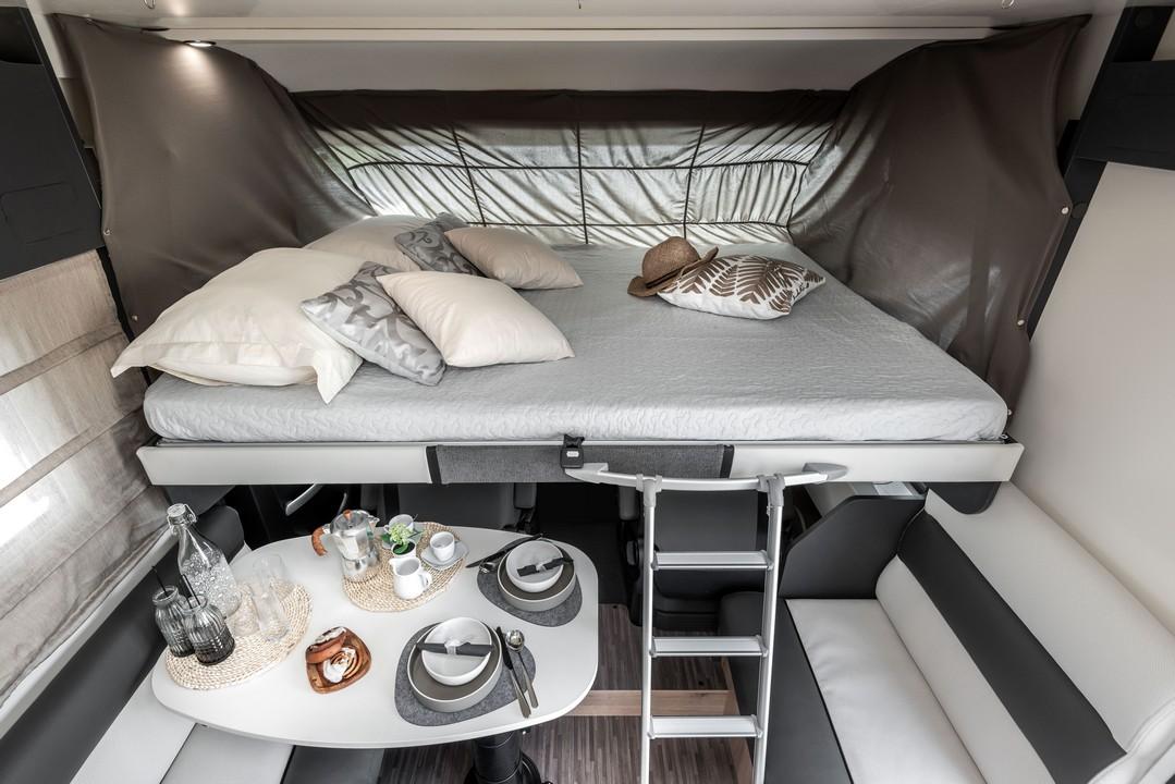 Ločeni postelji v zadnjem delu se lahko združita v veliko ležišče, tako da lahko prespi tudi 5 oseb, in 5 je tudi homologiranih sedežev, kar je redkost pri integriranih avtodomih.