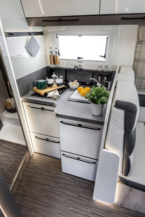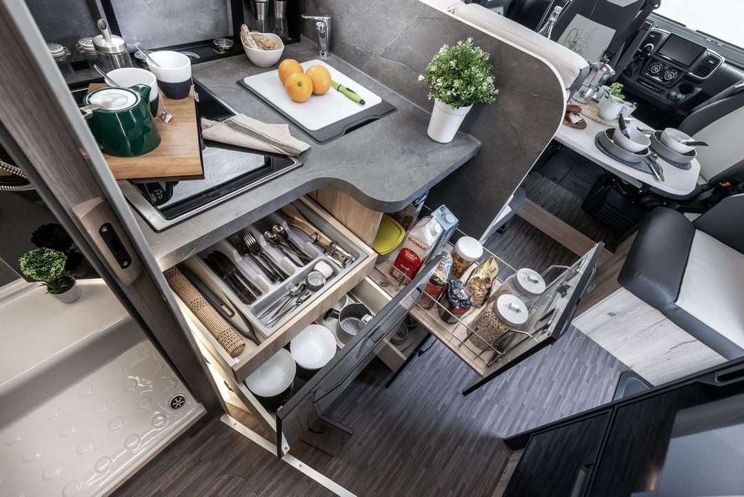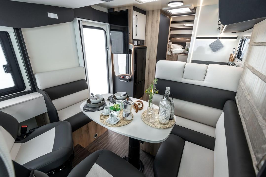 osnova Fiat 140 KM, Euro 6E, 16'' alu platišča, celoletne pnevmatike, 90 l rezervoar goriva, električna ročna zavora, ESC, Traction Plus, meglenke, ročna klimatska naprava kabine, tempomat, odbijači v beli barvi, Air Bag voznika in sovoznika, 5 homologiran sedež, XL vhodna vrata z oknom in komarnikom, centralno zaklepanje, TV nosilec, okno Skydome, dieselska Truma Combi 4 - X Panel, XL vhodna vrata, Winter Pack, usnjena volan in prestavna ročica, 158 l kompr. hladilnik, 9" Radio Pioneer DAB, Android, vzvratna kamera, solar 200W, ...