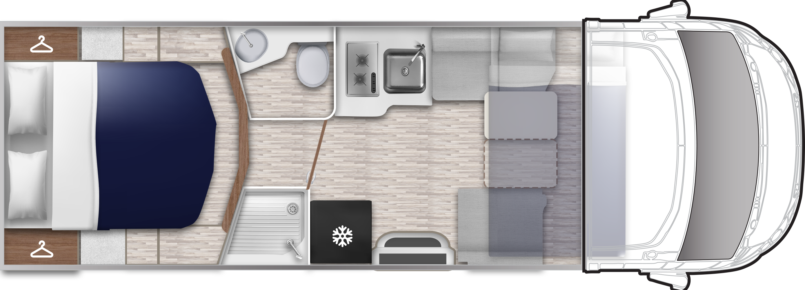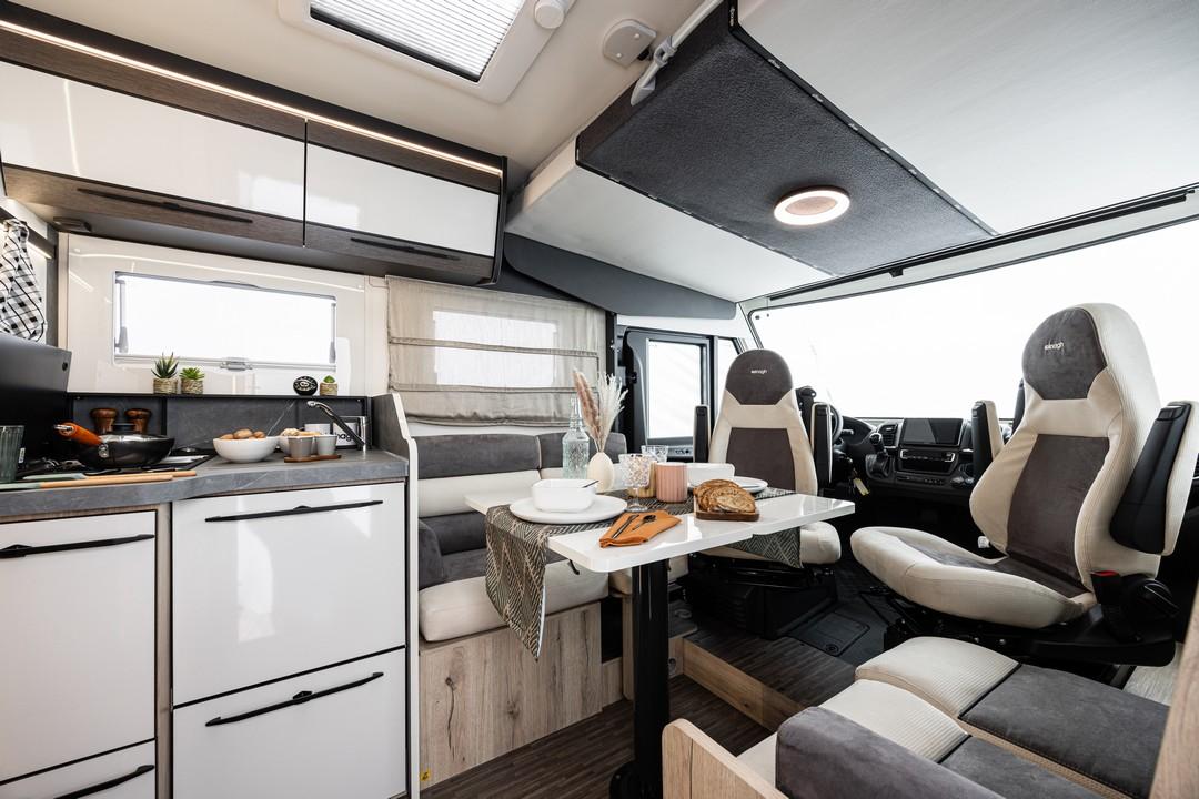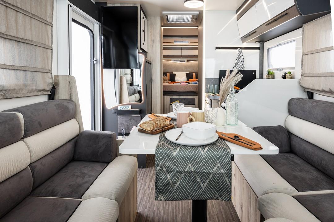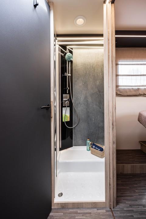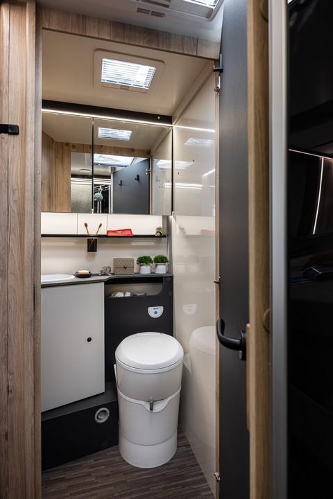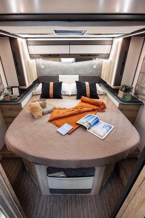 Avtodom Magnum 581 ima francosko posteljo, ločeno tuš kabino od WC-ja in "face to face".