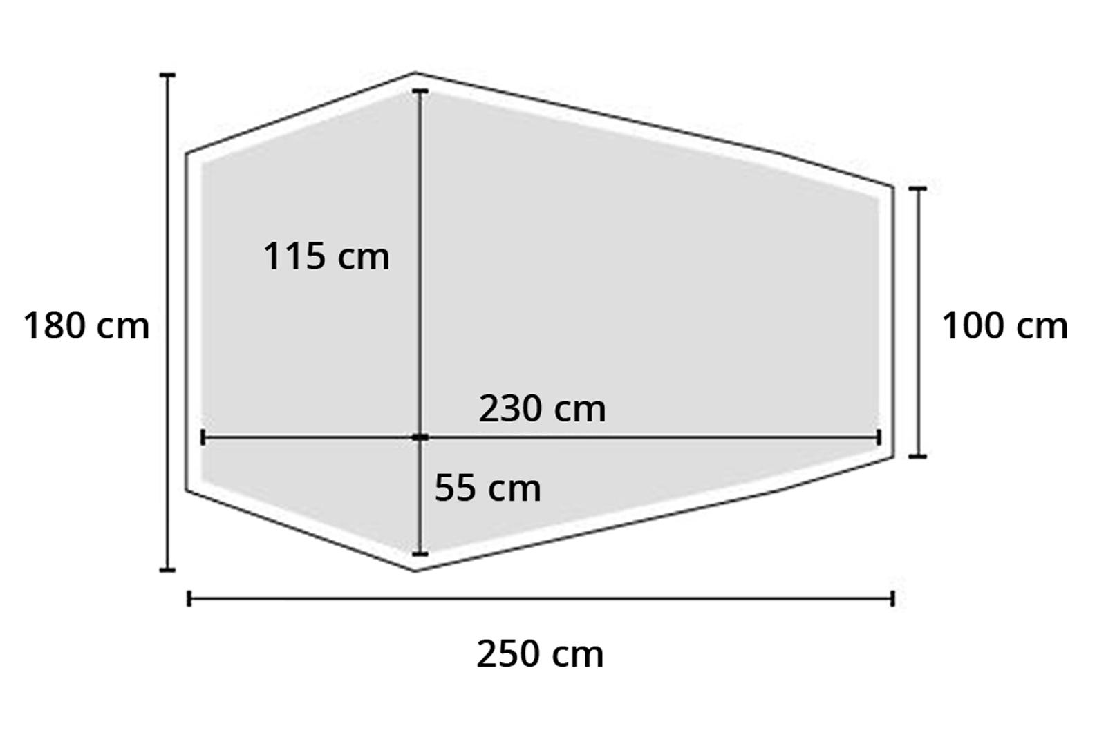 Udoben kupolasti šotor iz trdega poliestra. Lahek in zelo prostoren šotor je mogoče hitro postaviti. Vodoodporna spodnja folija iz PE je ob straneh potegnjena navzgor. Vhodni prostor se lahko uporablja kot manjša shramba. Kompaktna velikost je kot nalašč za pohodnike ali kolesarske ture.