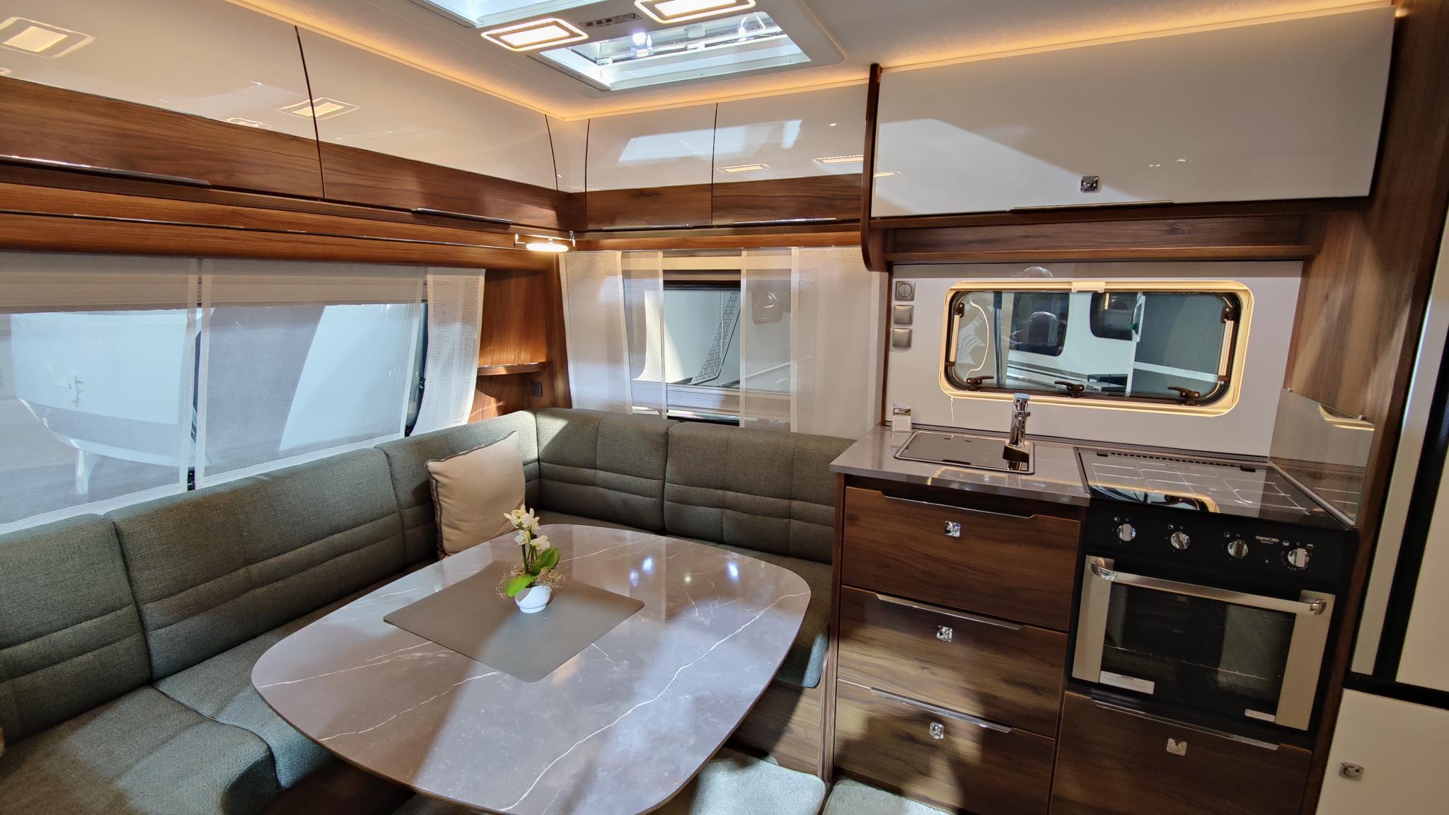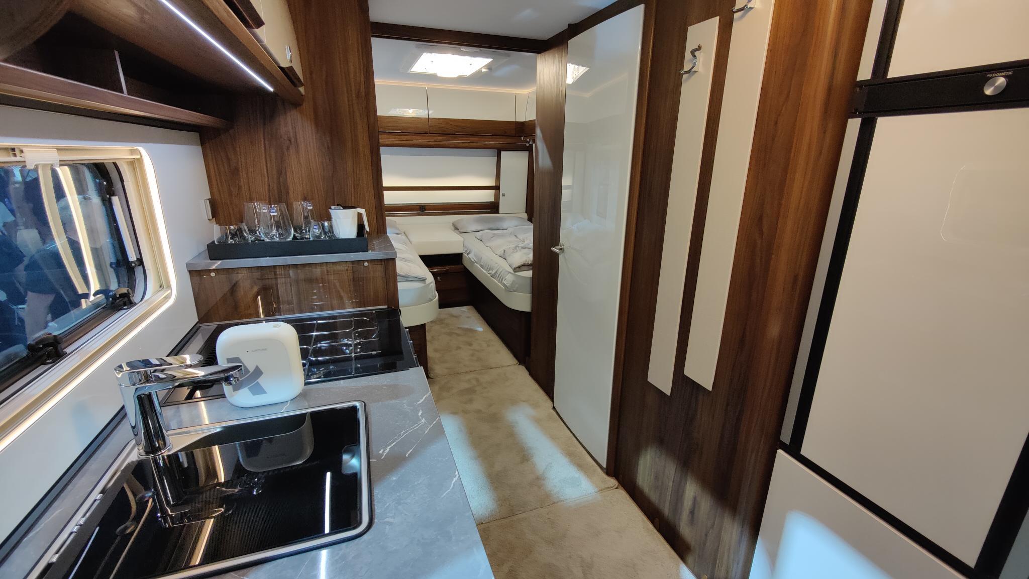 - Kuhinjski center z 12V osvetlitvijo delovne površine, pokrovom in grafičnim displayem, Radio + CD z Bluetooth sprejemnikom.