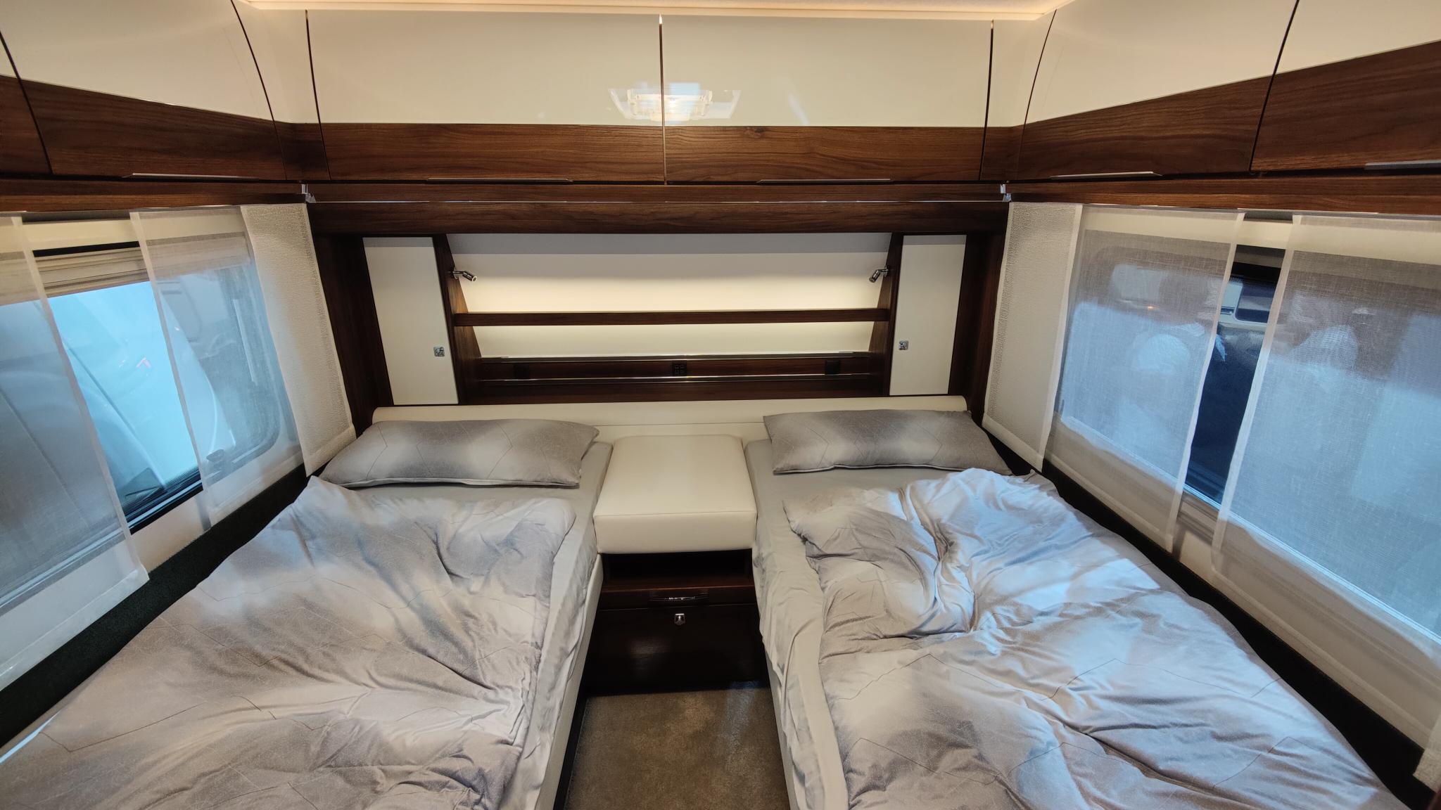 Fendt Diamant 560 SGW je širine 2,5m z ločenima posteljema, dodatno ležišče se lahko naredi iz omizja.