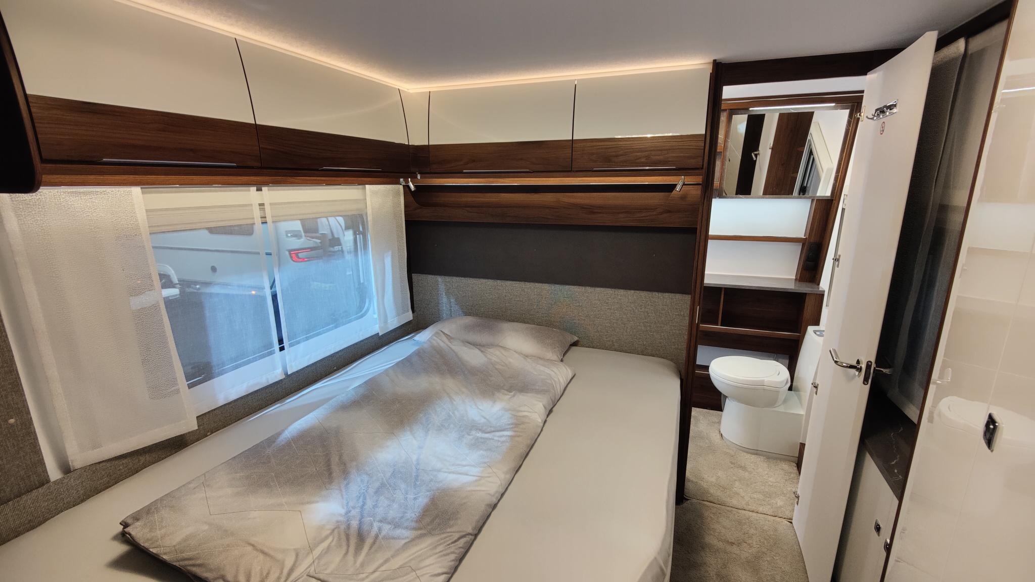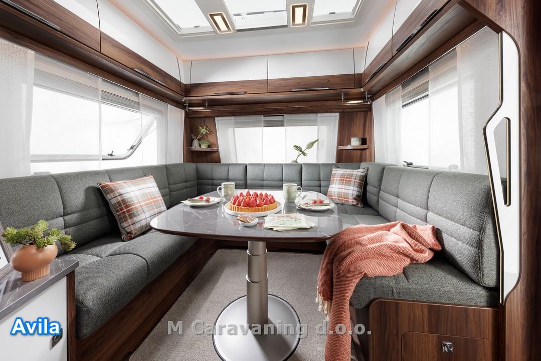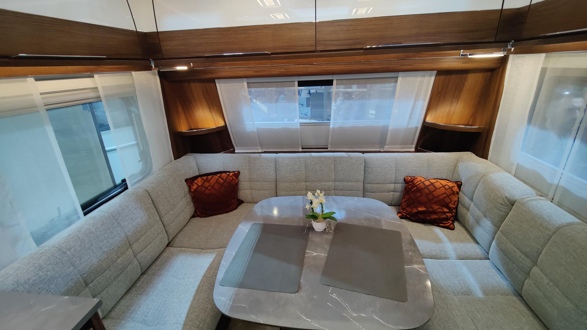 Model 560 DW je širine 2,5m s francosko posteljo, dodatno ležišče se lahko naredi iz omizja.