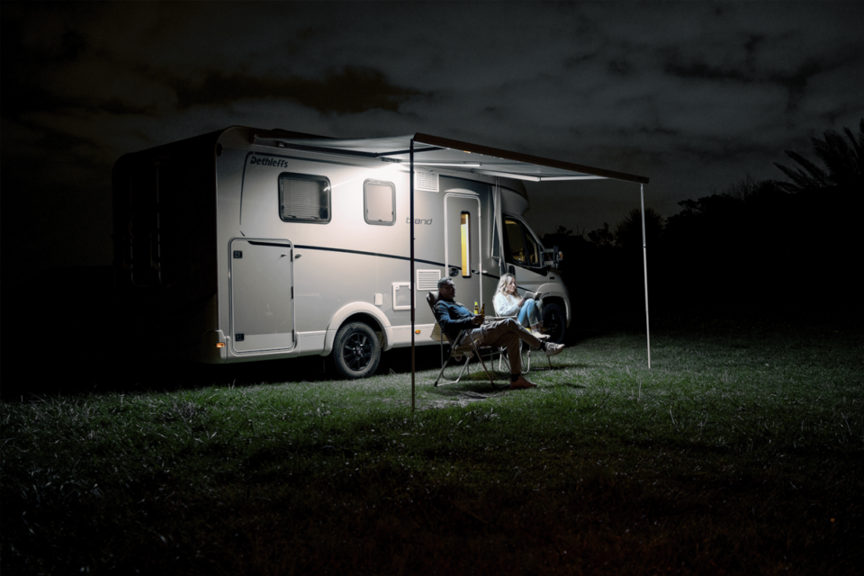 Fiamma rafter LED - prenovljen dizajn z enostavnejšo in bolj praktično pritrditvijo tende.
