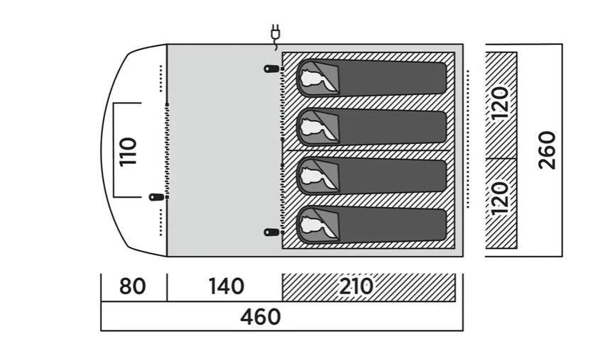 Senja 4 Air je zasnovan za vse, ki želijo več časa preživeti v naravi in manj pri postavljanju šotora. Zahvaljujoč napihljivi zasnovi se šotor postavi hitro in enostavno, njegova predoblikovana zračna ogrodja pa ustvarjajo prostorno in svetlo notranjost. Všita talna podlaga ščiti pred prepihom, vlago in insekti, učinkovita prezračevalna zasnova pa skrbi za svež in prijeten zrak skozi ves dan. Spalnice SleepTight zmanjšujejo vdor svetlobe, zato boste tudi ob sončnih jutrih spali dlje in udobneje.