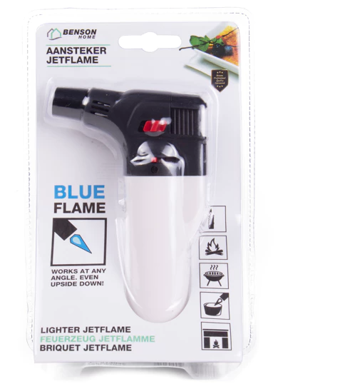 Plinski vžigalnik z močnim in nastavljivim plamenom, ki deluje tudi v vetru. Vžigalnik je polnilni in ima zaščito za otroke.