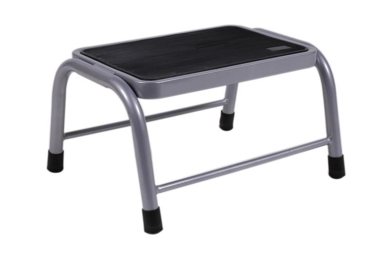 Stopnica je izdelana iz trpežnega jekla, kar zagotavlja stabilnost in dolgo življenjsko dobo. Noge so opremljene z gumijastimi čepi, ki preprečujejo zdrs ter omogočajo varno uporabo na različnih podlagah.