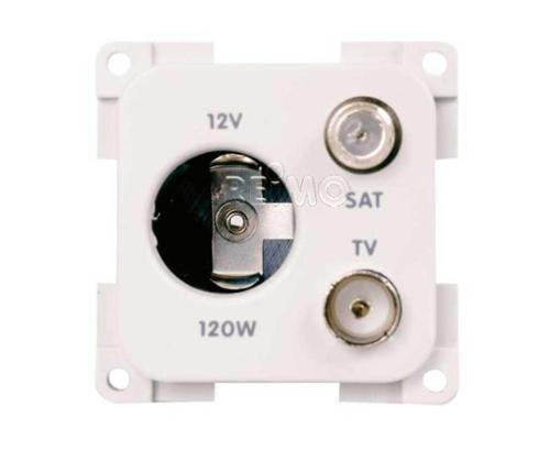 Vtičnica za koaksikalni kabel in F vtič (antena + TV) in 12V normalna - mala vtičnica. Potrebno dokupiti še okvir.