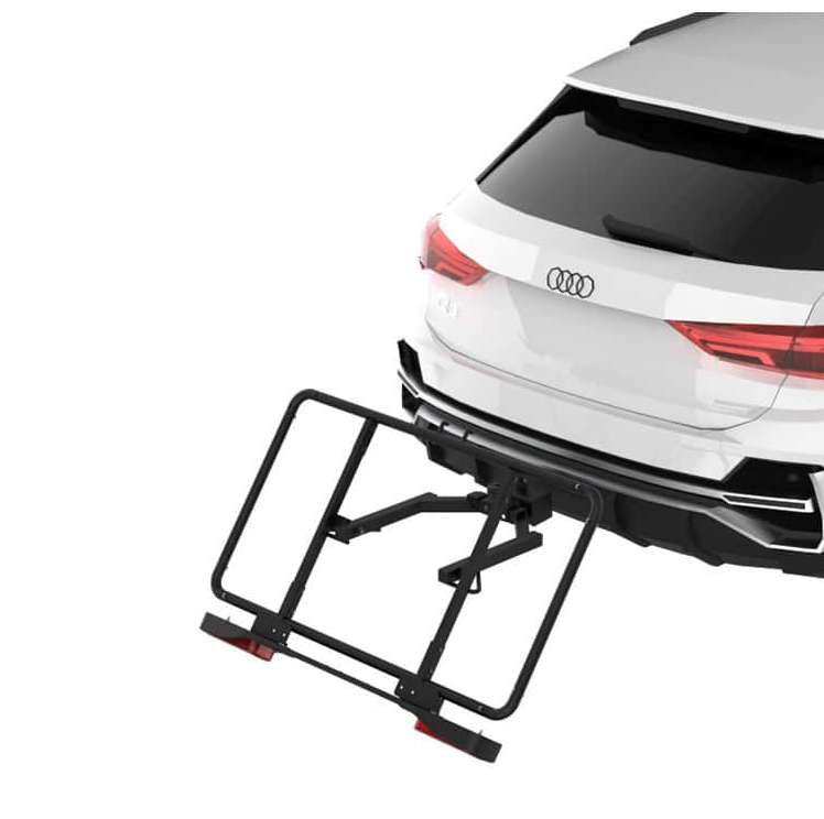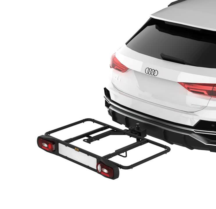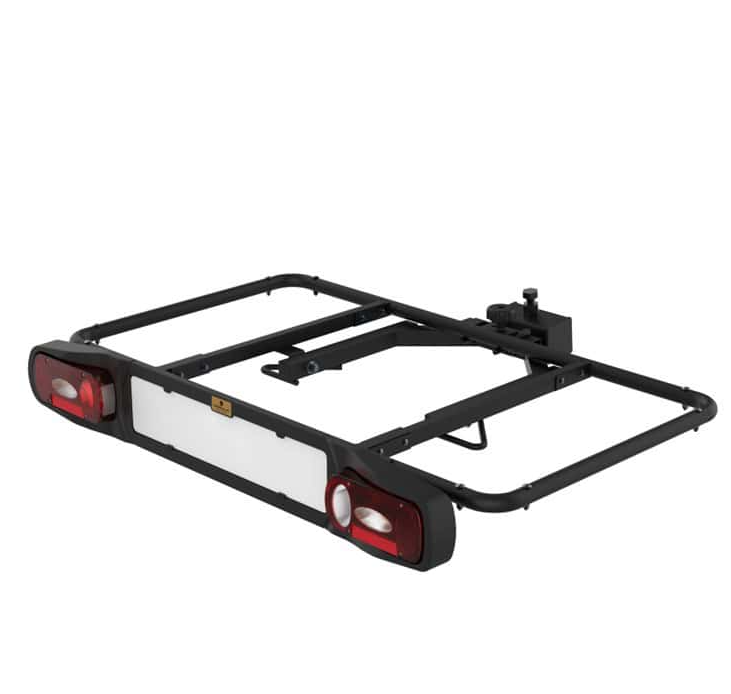 Opremljen je z vgradnimi zadnjimi lučmi in 13‑polnim priklopom, vključno z meglenko in vzvratno lučjo, kar zagotavlja popolno skladnost s cestnoprometnimi predpisi. Integriran nagibni mehanizem omogoča dostop do prtljažnika tudi takrat, ko je nosilec obremenjen.
