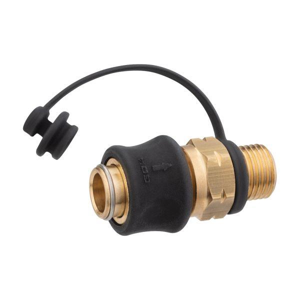 Zahvaljujoč ergonomskemu in nedrsečemu ročaju vtična spojka SKU-QR udobno leži v roki in omogoča enostavno priklapljanje in odpenjanje.