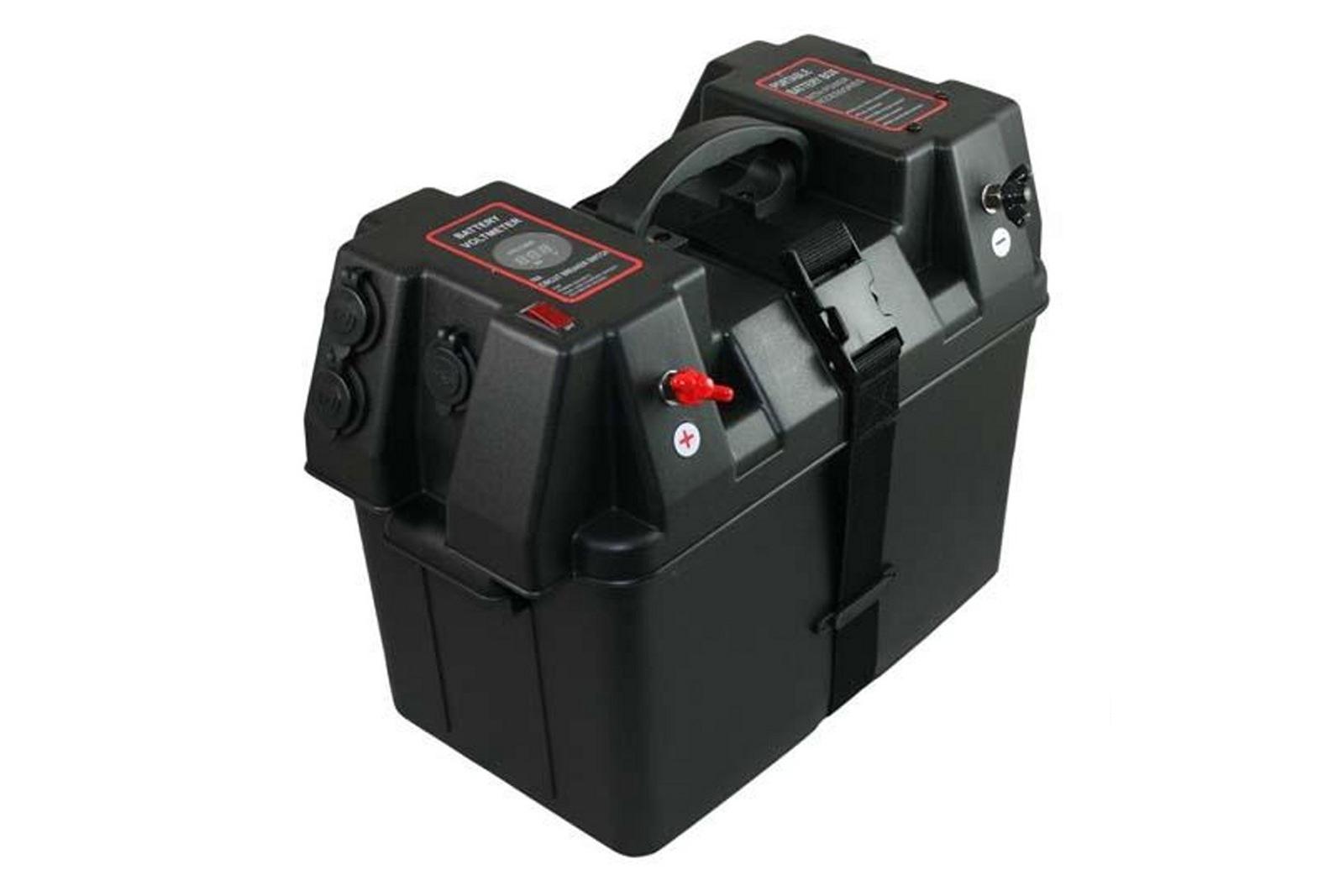 HABA Smart Power akumulatorska škatla z že vnaprej sestavljenimi kabli za enostavno priključitev na akumualtor in zunanji priključek preko krilne matice za priključitev elektromotorja ali ponilca. Ročaj za lažje nošenje. Zasnovano za 12V enosmerene akumulatorje. Vgrajen voltmeter za spremljanje stanja baterije in 2x USB vtičnica (1A in 2,1A). Idealna rešitev za manjša plovila, avtodome in prikolice.