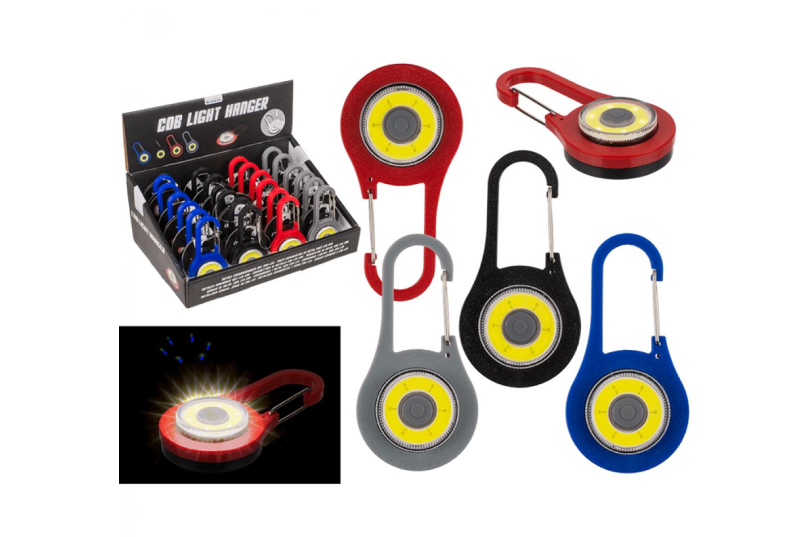 Lučka s kovinskim karabinom COB-LED (vključno z baterijami) pribl. 8 cm, barve so tovarniško sortirane. Cena za kos.