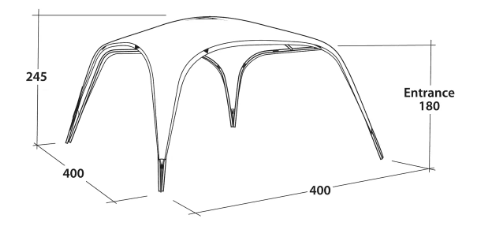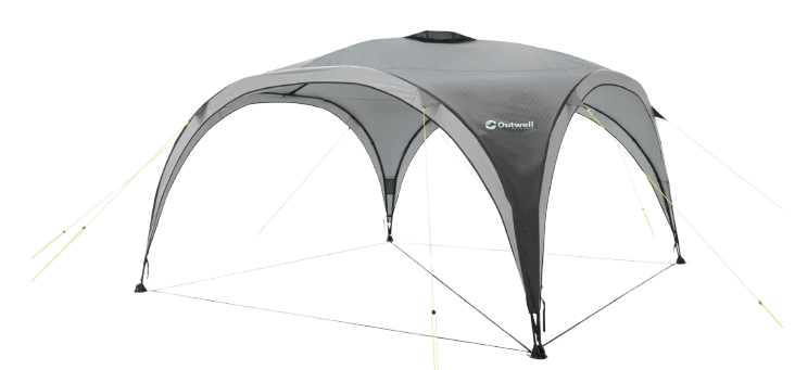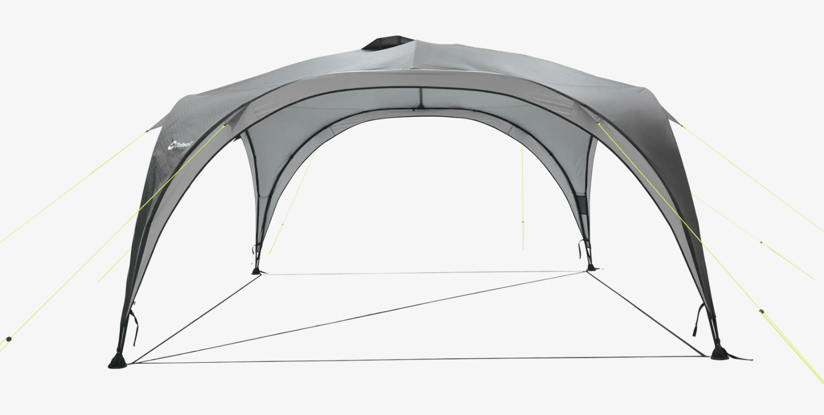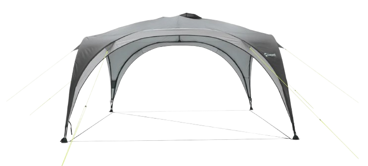 Paviljon je izdelan iz trpežnega poliestra Outtex 1500 Select Silver, ki se ponaša z vodnim stolpcem 1500 mm, kar zagotavlja zanesljivo odpornost proti dežju. Srebrna prevleka omogoča učinkovito UV-zaščito (UPF 30+), visoka vhodna višina in velik notranji prostor pa poskrbita za izjemno udobje.