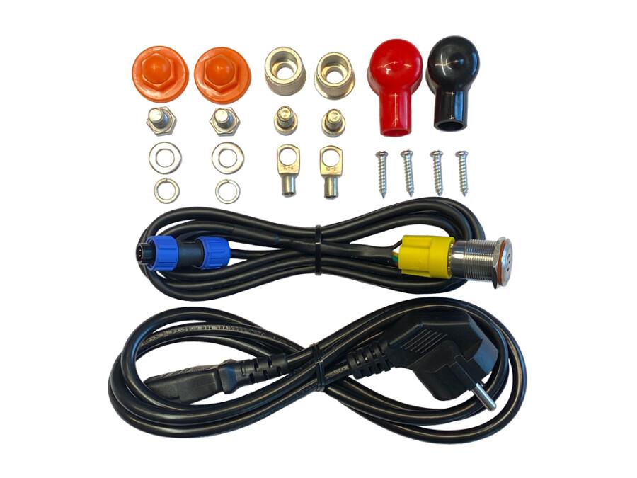 V kompletu: žični vklopni/izklopni stikalo, adapterji za baterijo in montažna plošča.