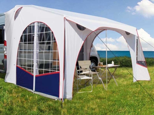 | Priloženo | Šotor, ogrodje in navpične palice iz jekla, napenjalne vrvice, klini, torba za prenašanje. |