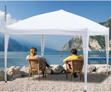 Hitro postavljiv paviljon velikosti 3 x 3 metre z jeklenim ogrodjem. Strešna ponjava je iz poliestra in ima premaz PE, odporna na vodo (290g/m2). Priložena Možnost dokupa stranskih sten.
